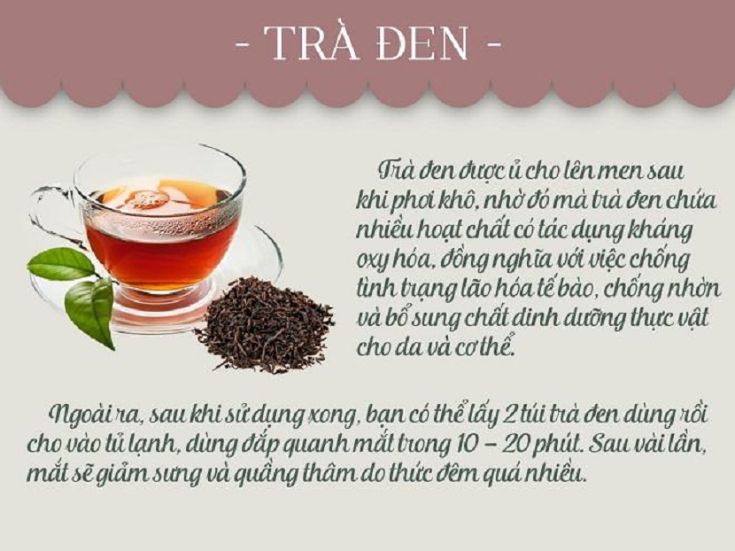 Công dụng làm giảm stress, chống ung thư : Với mỗi buổi sáng việc bạn và tôi nên làm một cốc trà đen với lý do sau: Có rất nhiều chất chống oxy hóa và có chất L-theanine có tác dụng trong việc phòng chống ung thư hiệu quả bên cạnh đó chất L-theanine còn kích thích bộ não giúp chúng ta có tinh thần thoải mái, cảm giác được thư giãn thư thái, tăng khả năng của trí nhớ…